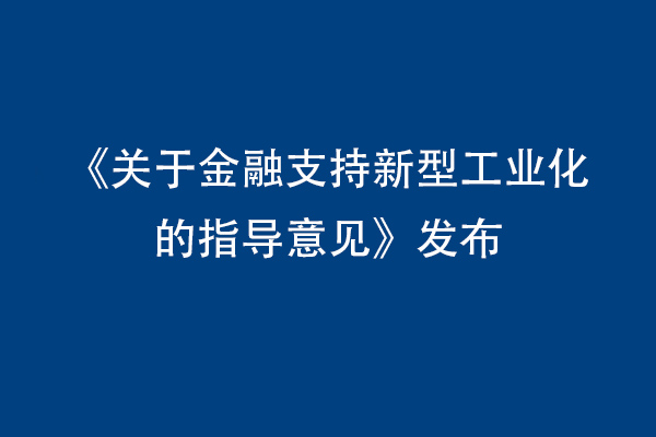 《关于金融支持新型工业化的指导意见》发布
